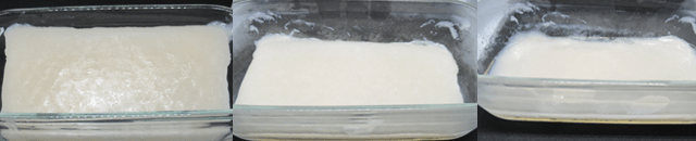 左が2時間経過した時点で、容器を斜めにしたもの。右が2時間半ほど経過した時点で、同じようにした写真です。2時間半もすれば、液体になっています。